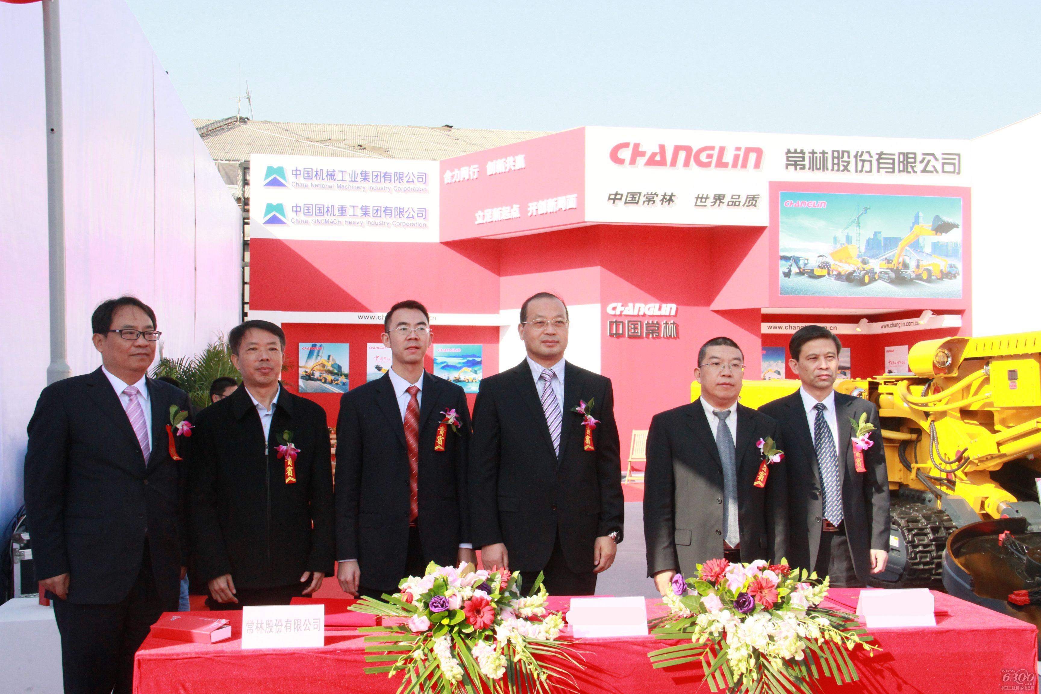 在本届展会上常林股份展出两款精心打造的某型掘进机,并与某客户签署合作协议。出席签约仪式的领导有中国国机重工集团有限公司董事长吴培国、总工程师郑尚龙、常林股份有限公司总经理陈卫、总工程师廖晓明及客户代表。