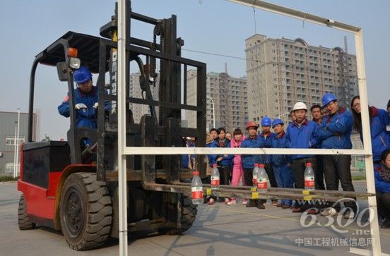 据了解,本次比赛每名选手需在限定时间内将货叉上的5瓶矿泉水挂在预先设置好的金属圈上,用时最少,挂载最多者即可获胜。参赛选手皆是各车间选派的精兵强将,他们看上去都信心十足。