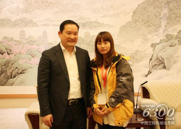 三一集团董事、泵送事业部董事长梁林河先生与中国工程机械信息网记者合影