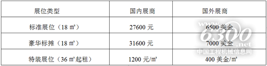 展位规格及收费标准