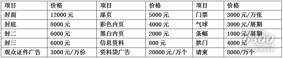 【会刊及会场广告】注:为配合展商在展览期间宣传及让客户了解展商并在会后能与之沟通联系,组委会将精心编印大会会刊,会刊除向现场参观的专业人士派发外,还向行业主管部门、代理商、销售商用户用户单位、研究所、协(学)会等单位寄发. 借助各种媒体,重点是专业媒体,针对本展会的专业性、区域性,展贸结合的定位,广泛宣传.