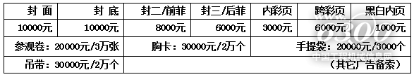 为了配合展商在展览期间宣传及让客户了解展商并在会后能与之沟通联系,组委会将精心编印大会会刊,会刊规格:145mm×210mm.      大会会刊及其它广告收费标准