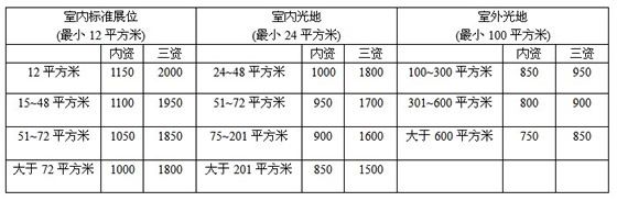 附:展位收费标准 单位:元人民币/平方米
