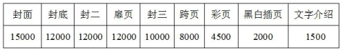 本届大会《会刊》一书为大32开(140mm×210mm)进口铜板纸彩色精印,图文并茂,它将尽列展会详情,展商及产品介绍,是本次大会对外宣传,行业交流,资料查阅独一无二的宣传资料,并且具有长期的广告效应。其价格如下: