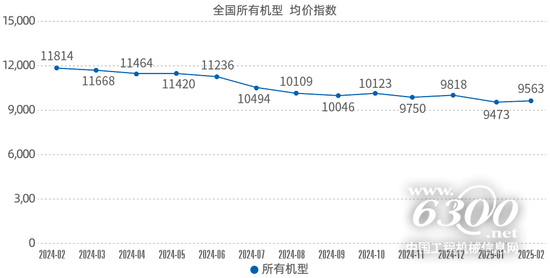 根据上报数据统计计算,2025年2月升降工作平台租金价格指数环比微涨不到1%,除20~24m机型环比上涨外,其他机型租金价格指数环比均处在略降和基本持平状态,36m以上机型环比价格变化最小,不足1%。而2025年2月升降工作平台租金价格指数同比下降19.1%,各机型同比租金价格指数均处在下降态势,其中20~24m机型同比降幅最小为2.0%,14~16m机型同比降幅最大,达到24.5%。